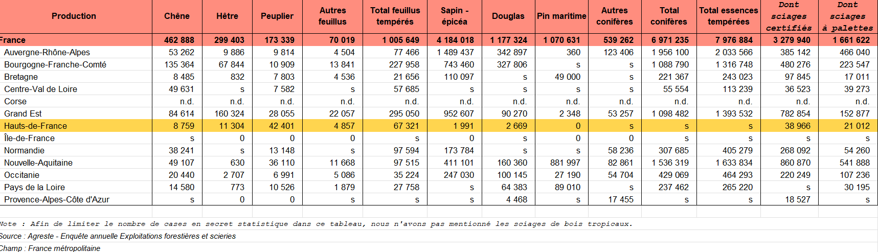 Les résultats de l’enquête sur l’exploitation forestière et la production de sciage pour l’année 2024 ont été publiés par l’AGRESTE (DRAAF).